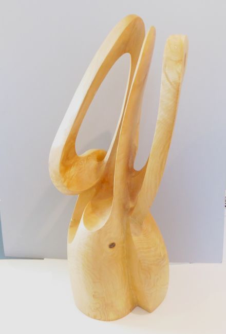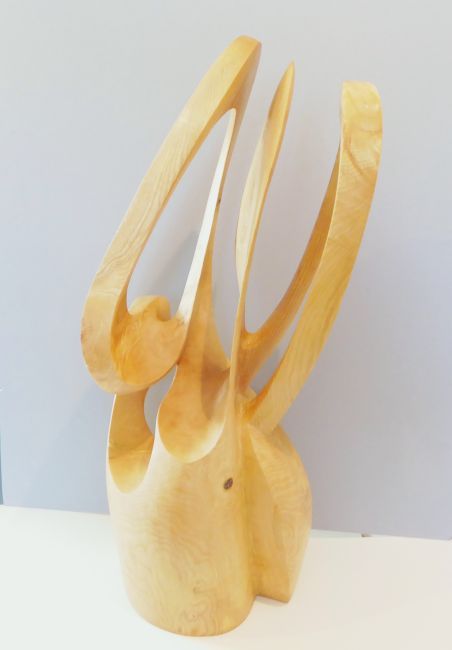 Hand carved ash with beeswax. 61cms high x 27cms wide x 22cms depth.