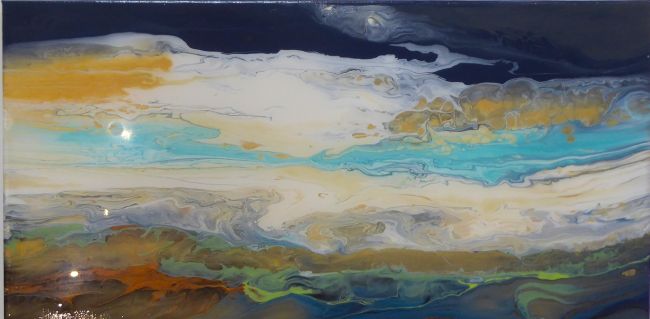 Acrylic and resin on canvas. 25cms high x 50cms wide.